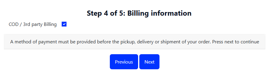 When logged in as a guest you will only have one option and that is COD/3rd party billing. Click next to move to step 5.